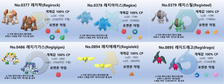 "레지기가스(☆)", "레지에레키(☆)", "레지드래고(☆)"