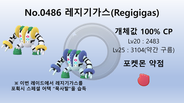 생기는 5성 알에서 "묵사발"을 배운 "레지기가스"가 등장합니다.