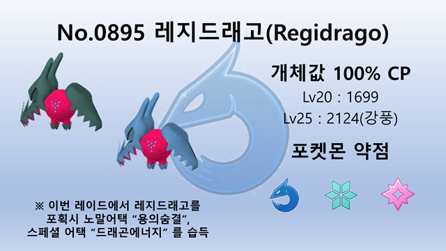 스페셜 어택 "드래곤에너지"를 배운 "레지드래고"가 등장합니다.